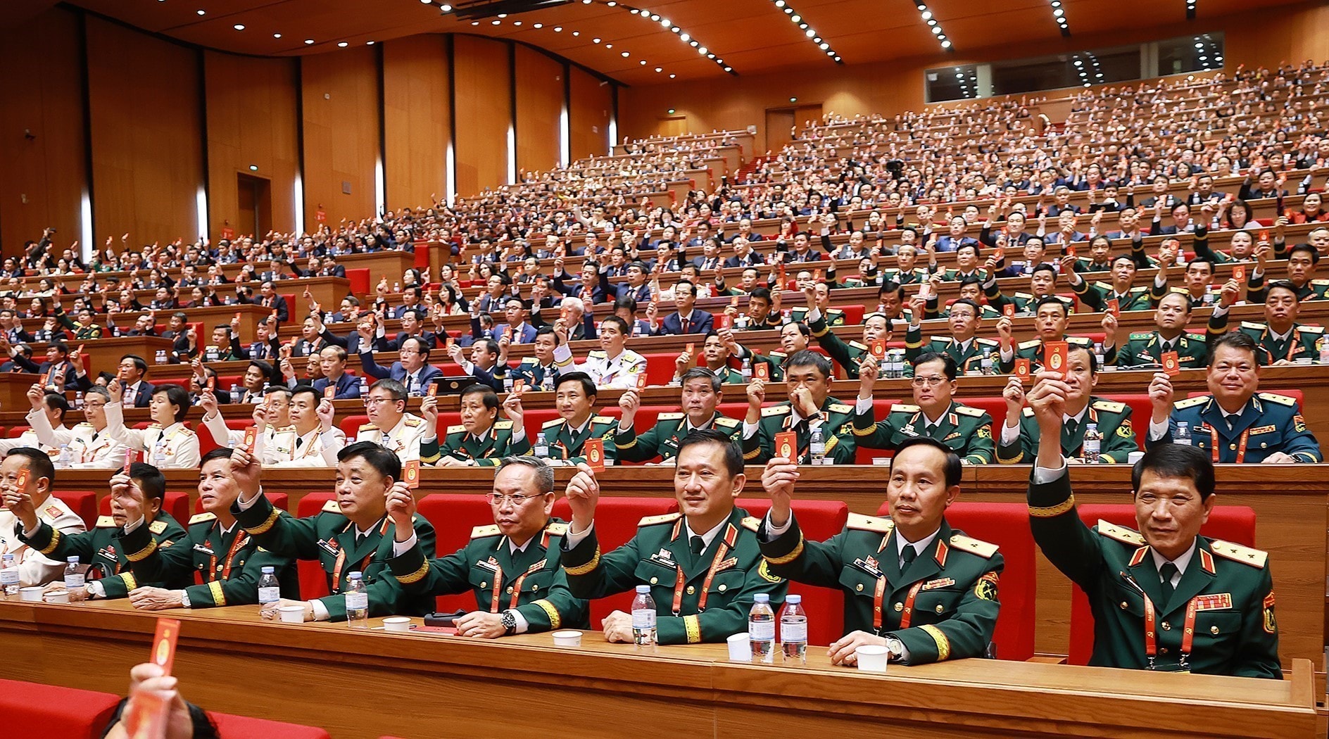 Các đại biểu biểu quyết thông qua danh sách bầu cử Ban Chấp hành Trung ương Đảng khóa XIV. Ảnh: TTXVN